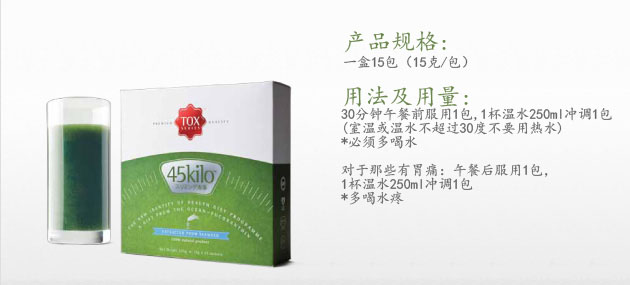 45kilo™是一种天然成分的组合,让你实现你的梦想,体质与理想体重。其主要成分是一家集减肥援助的珍贵药材。它使用了最先进的提取技术,从高档的藻褐素,车前子壳和其他多种天然营养素,有助于实现每一个人的闲置重量。