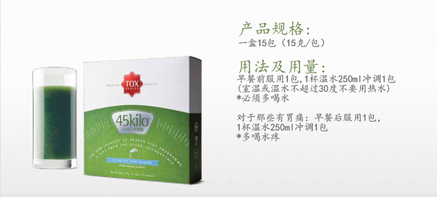 45kilo™成分组成的集合,这是所有天然成分的珍贵药材。它采用最先进的提取技术,从高档的藻褐素,车前子壳和其他多种珍贵药材和营养,帮助个人实现自己的体重目标